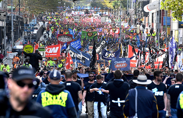 Road closures began at 9am, with the march from Trades Hall to the steps of Parliament House underway at 11.15am.