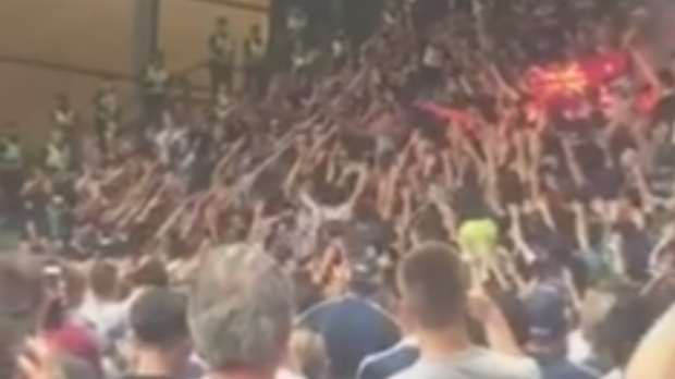 Police say it’s lucky no-one was seriously injured with 10 flares set off as Melbourne Victory supporters marched to Etihad Stadium before the clash with Sydney FC on Australia Day.