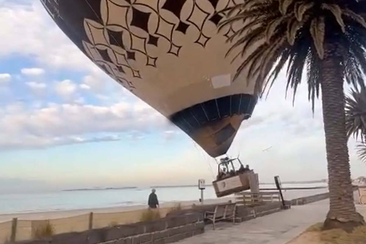 Vision has emerged of a hot air balloon coming down on the beach in St Kilda.