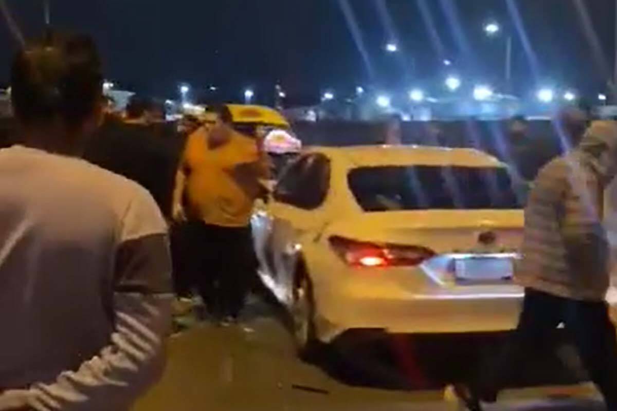 The footage shows a collision between a taxi and a rideshare car on July 23. The circumstances leading up to the incident are unknown.